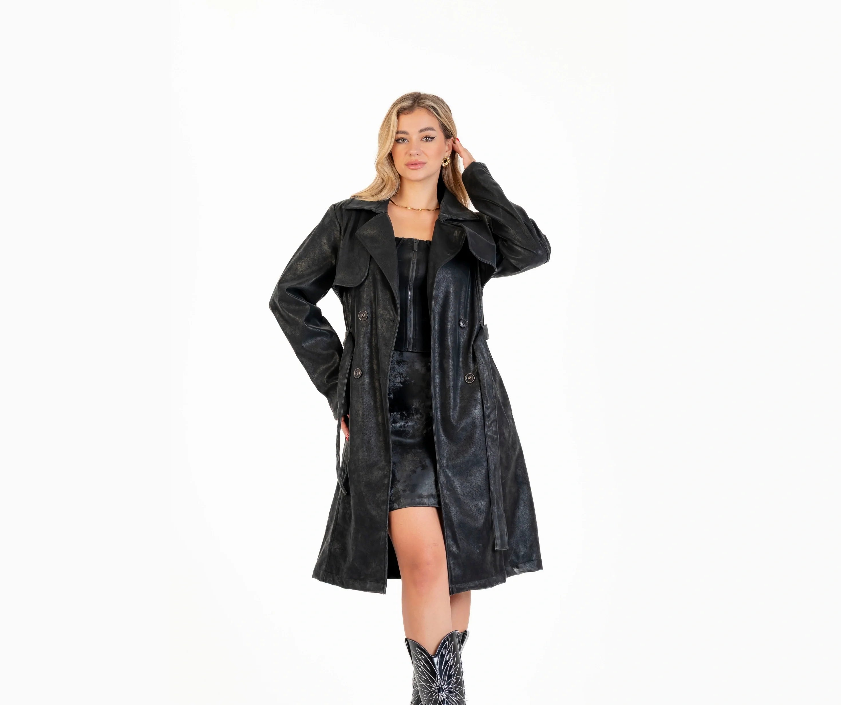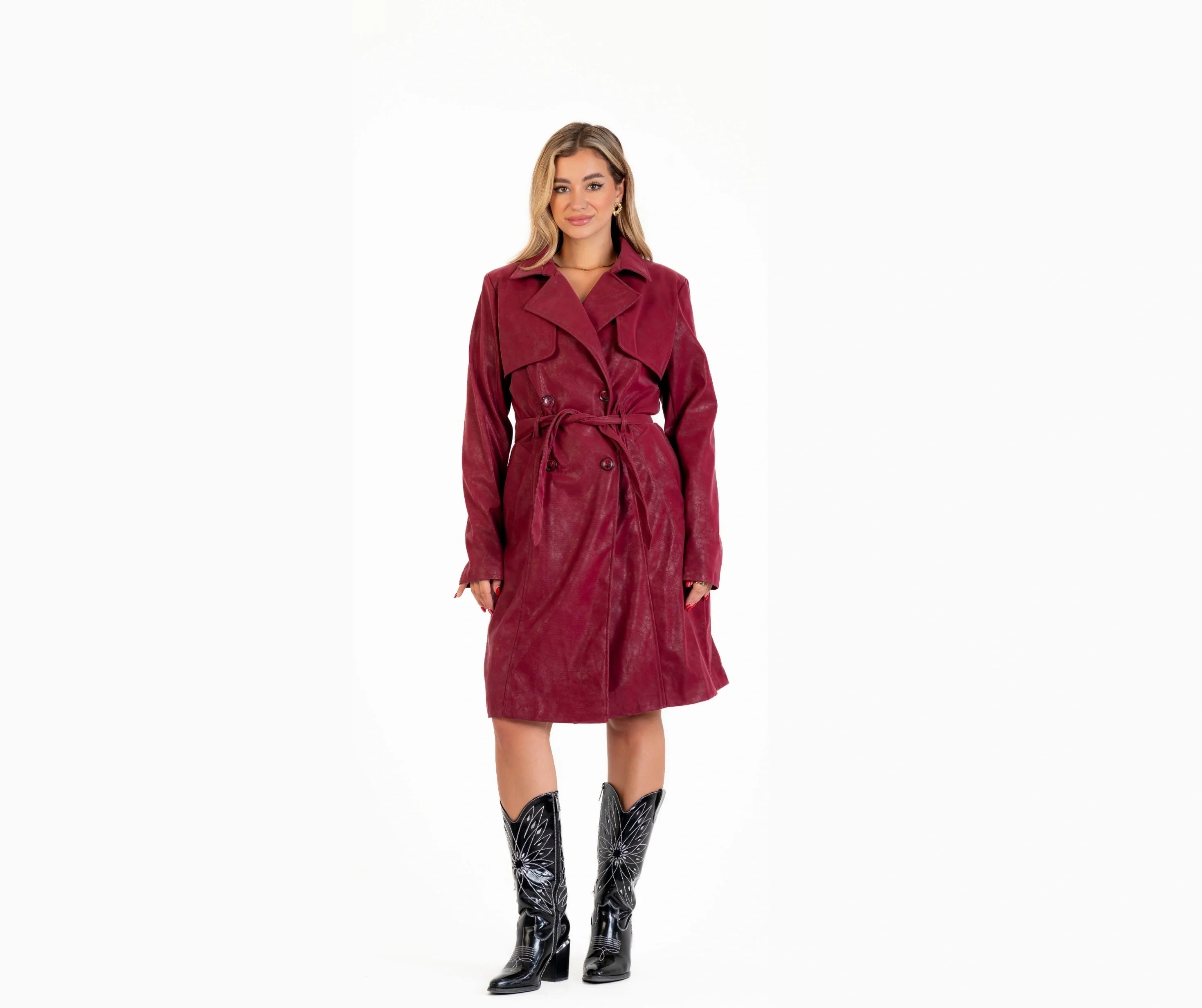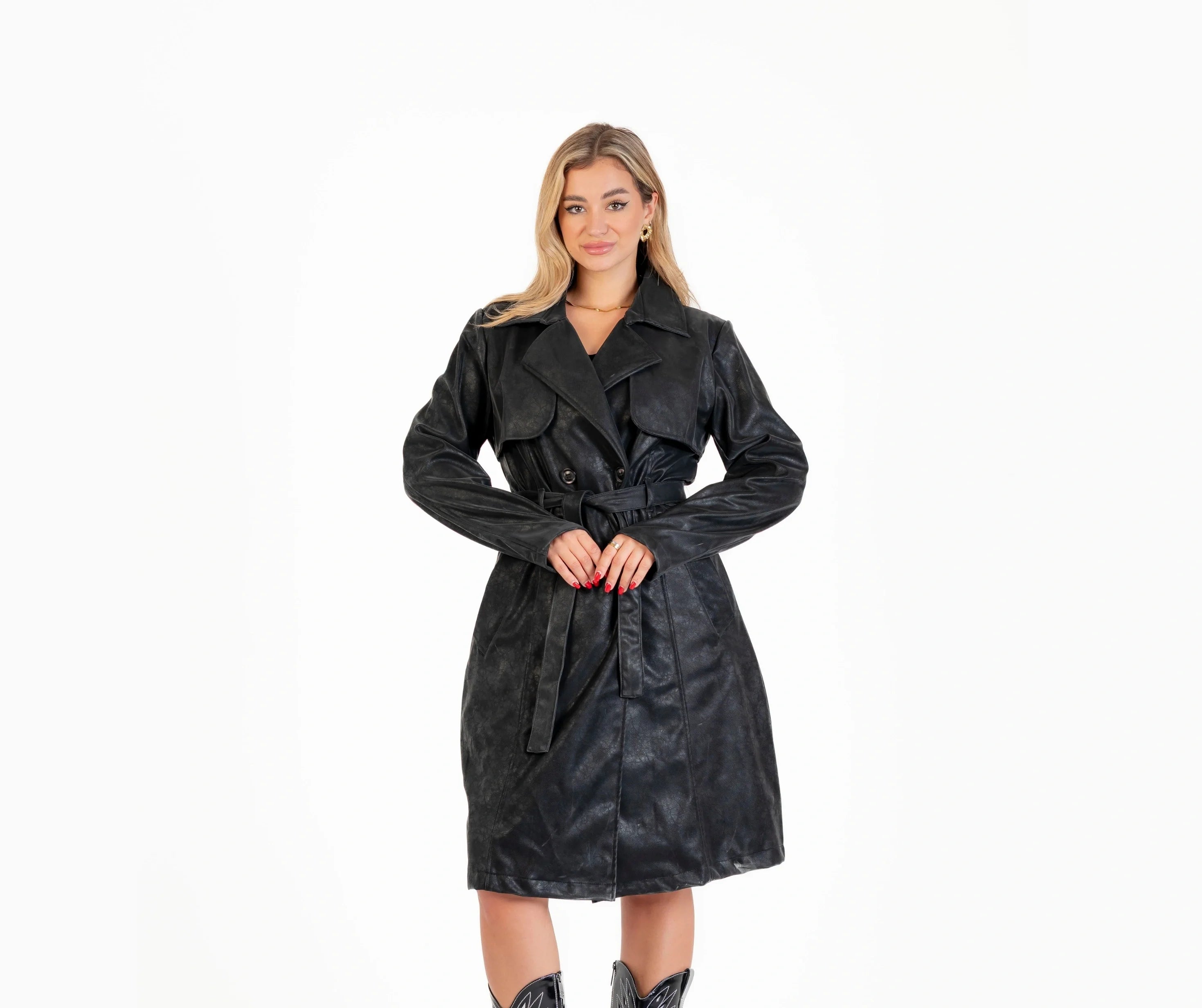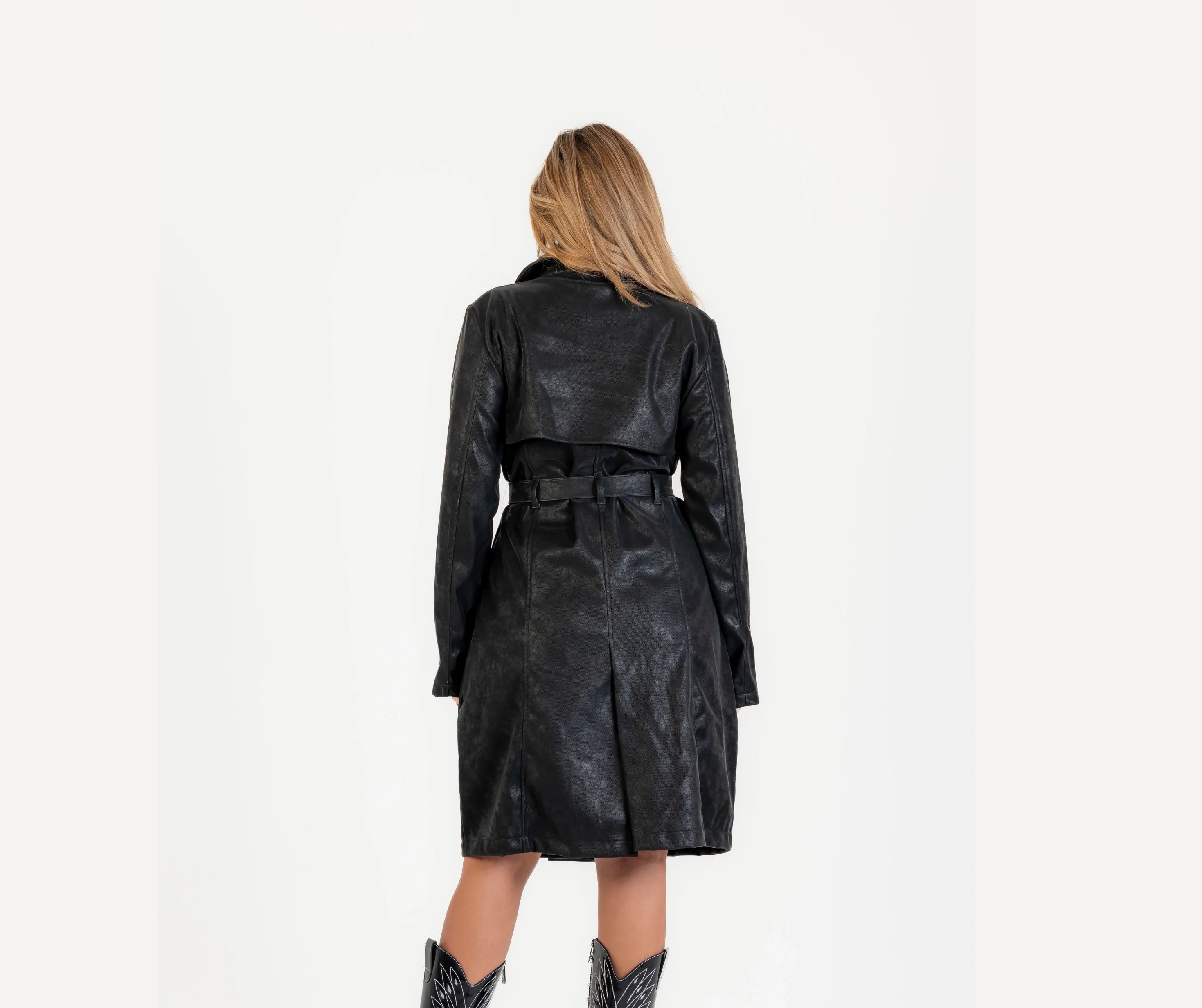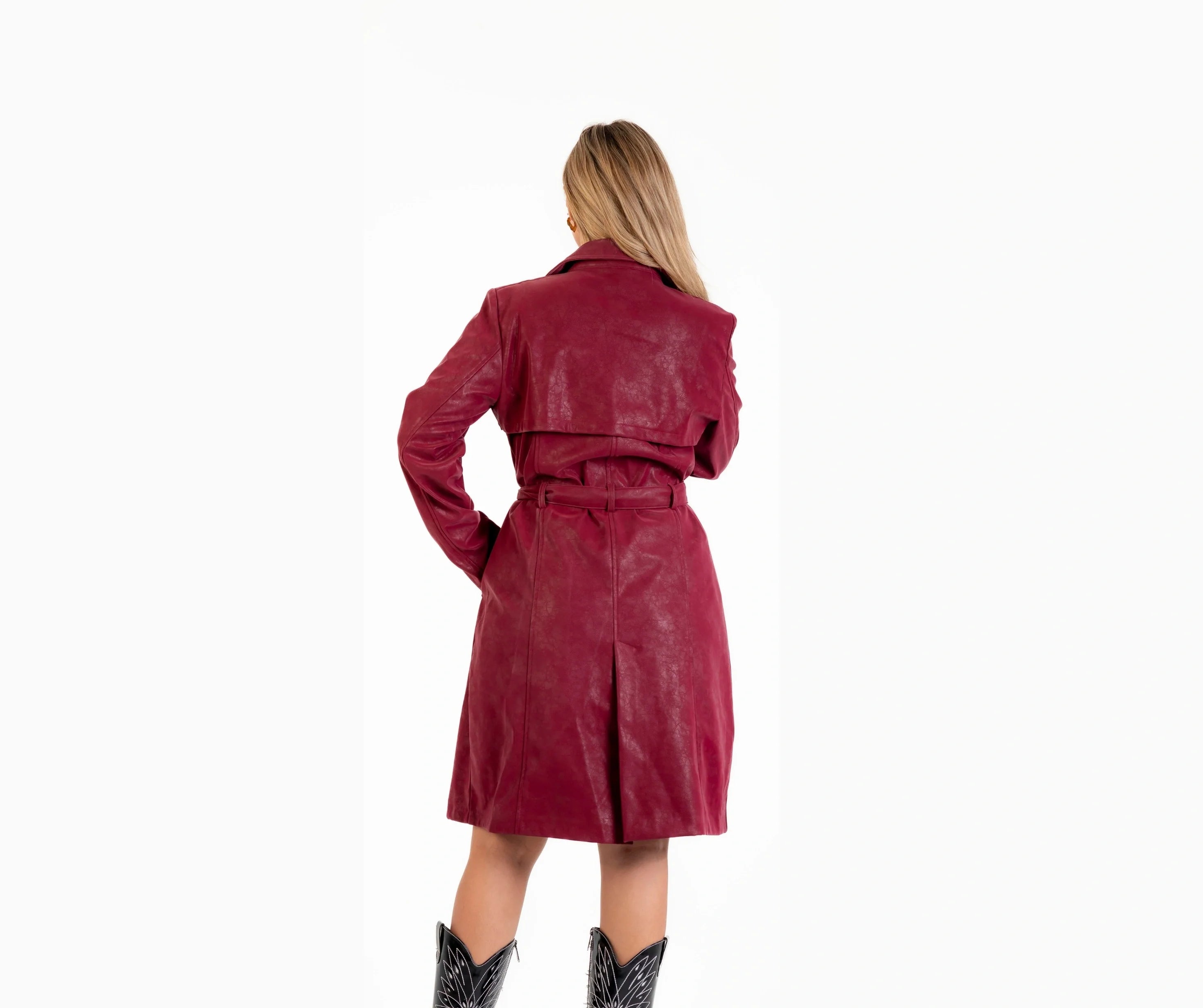 Leather coat with leather belt