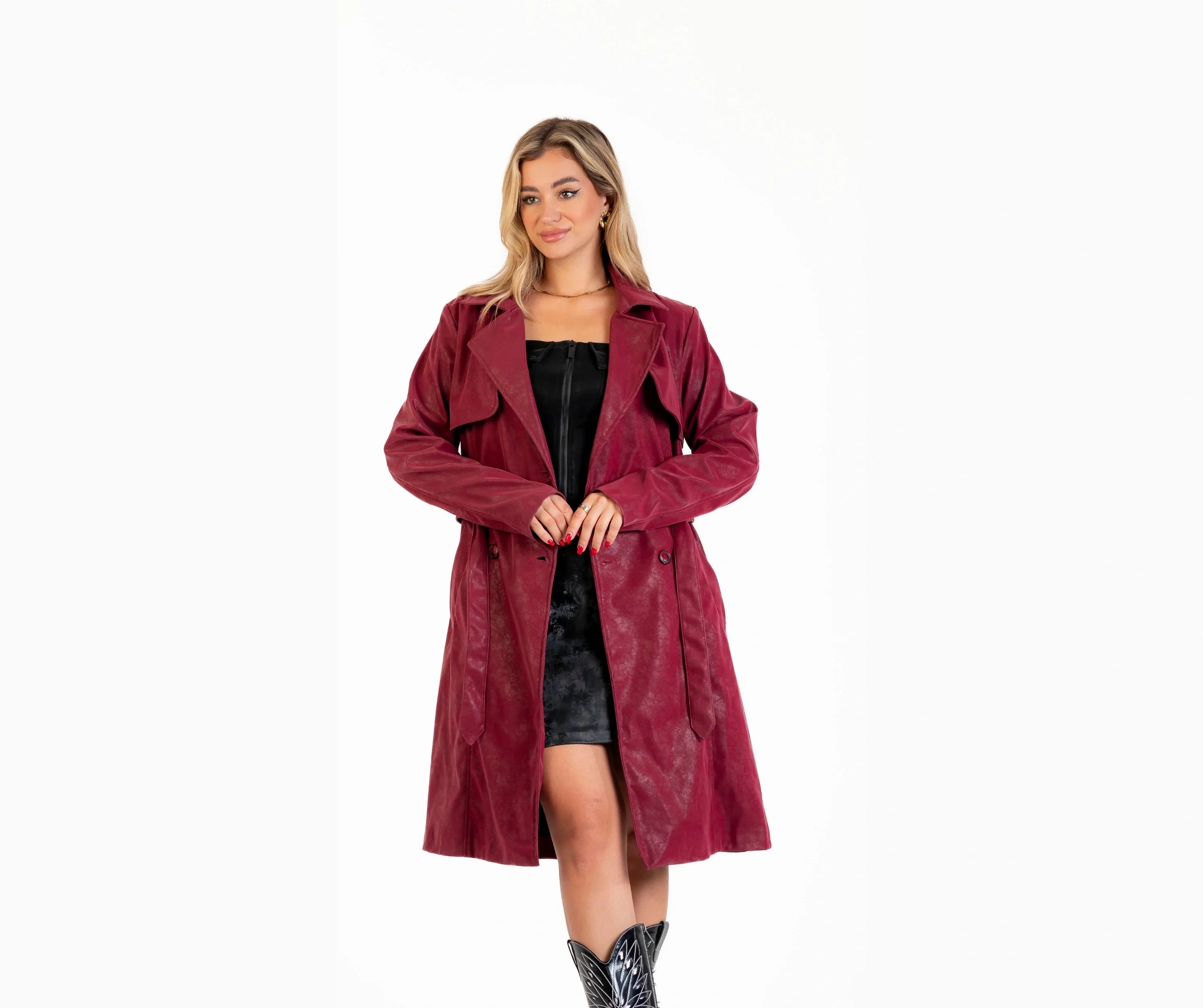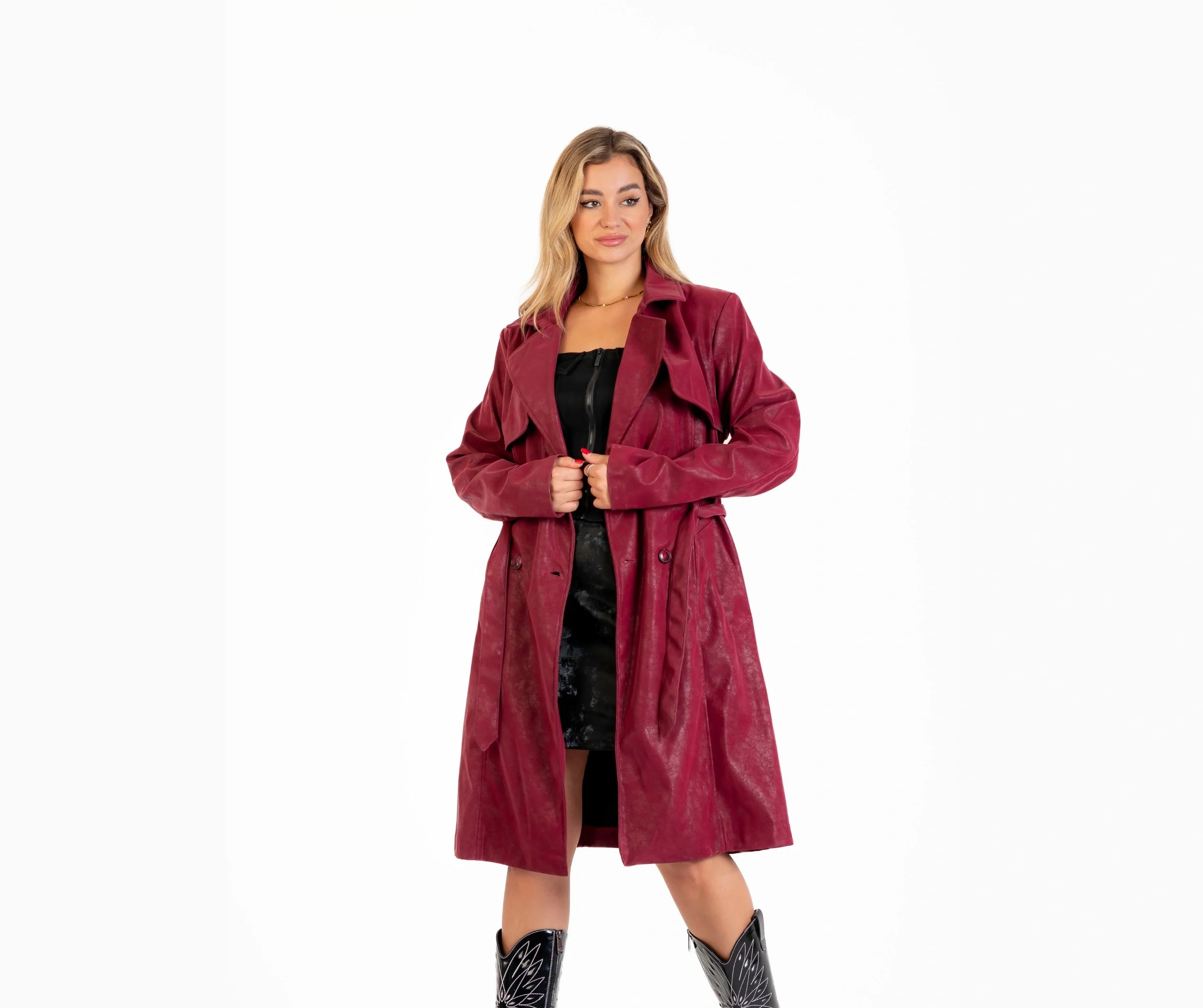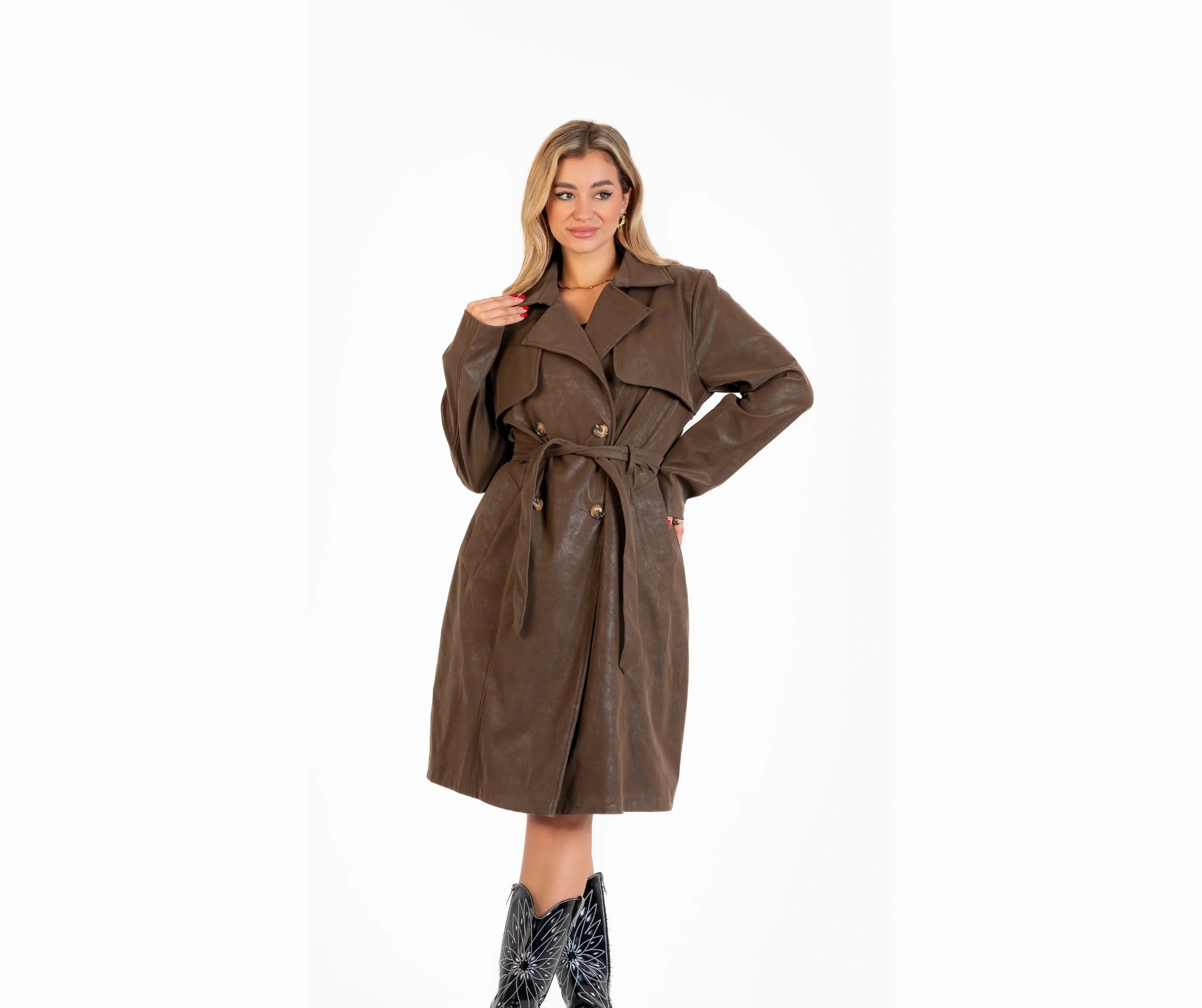 بالطو جلد ب حزام جلد