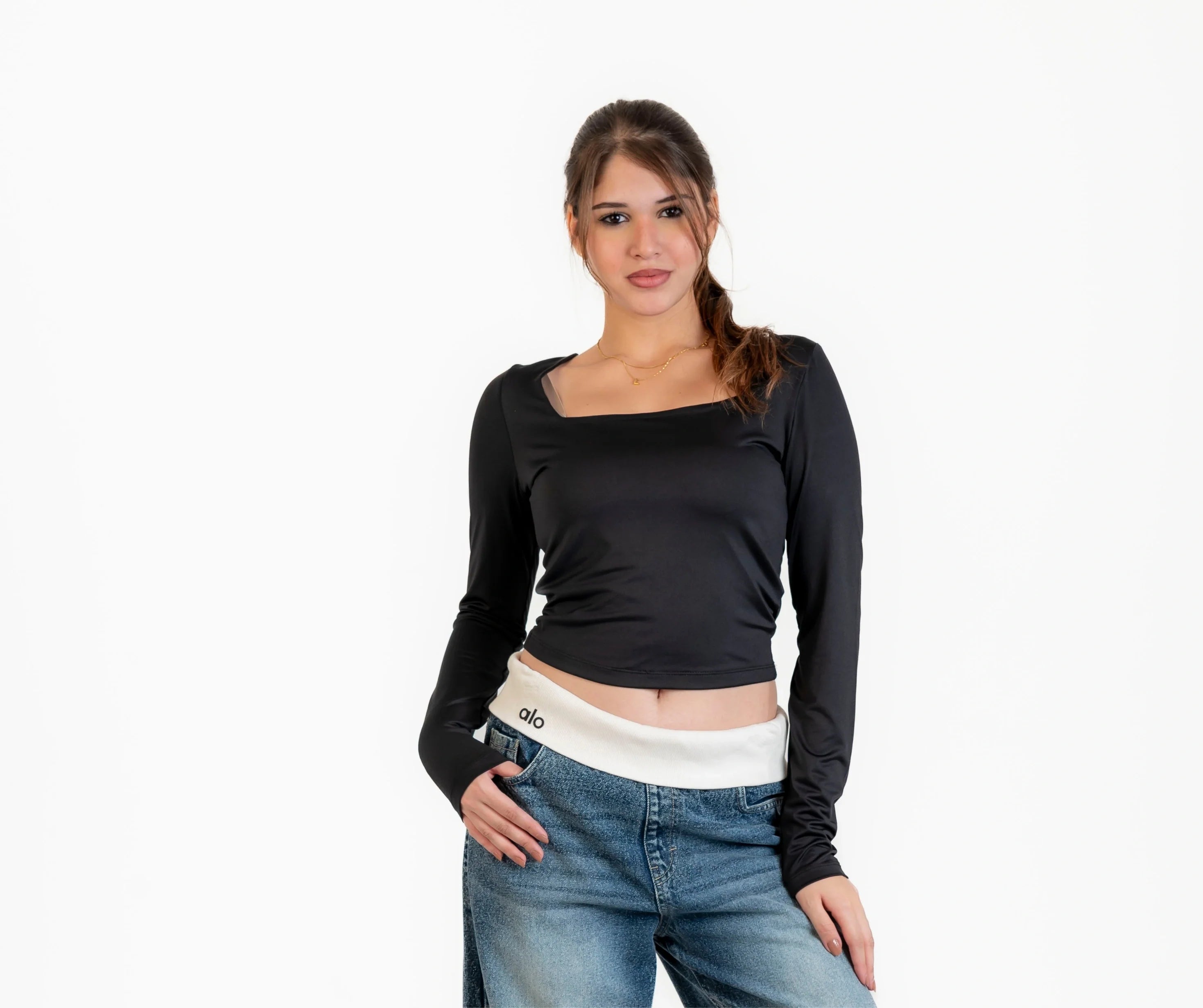 توب ليكرا كم طويل مربع مناسب للشتاء و الخريف