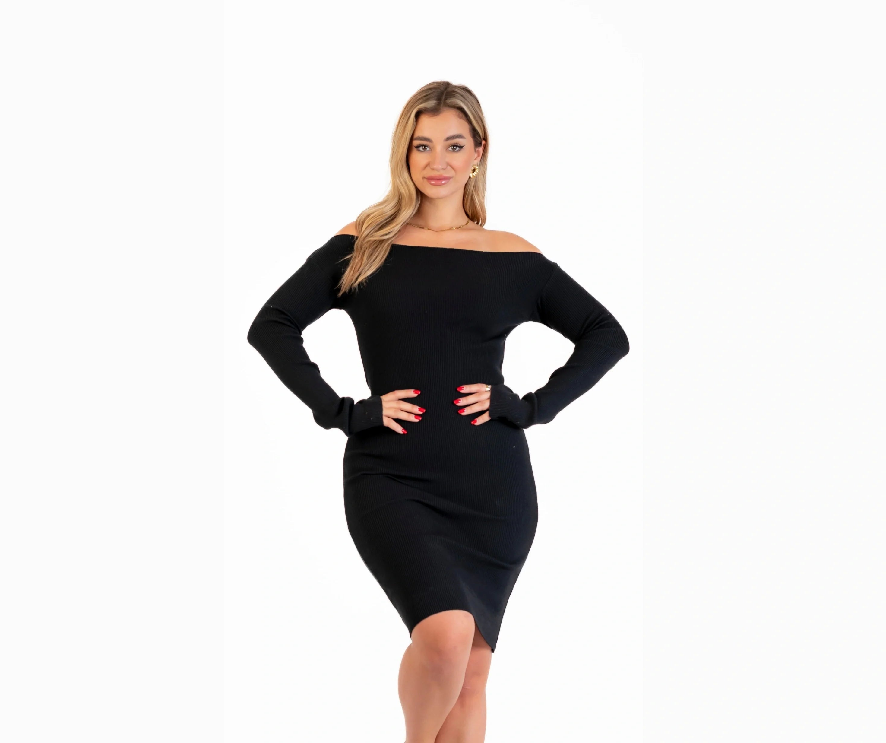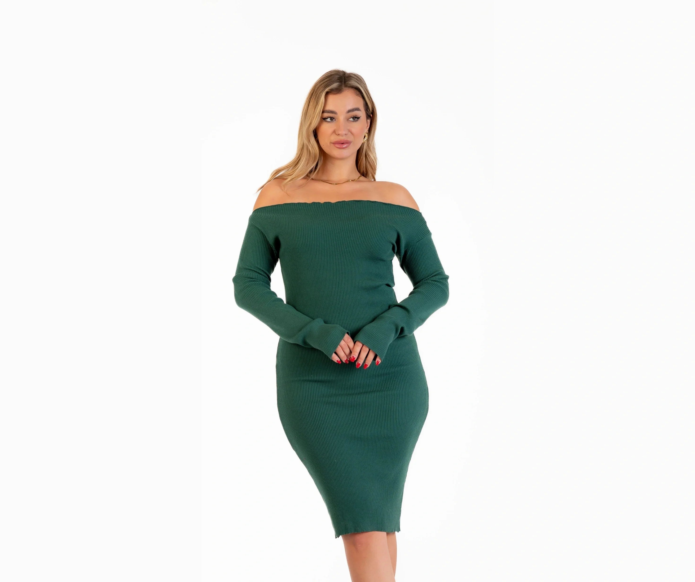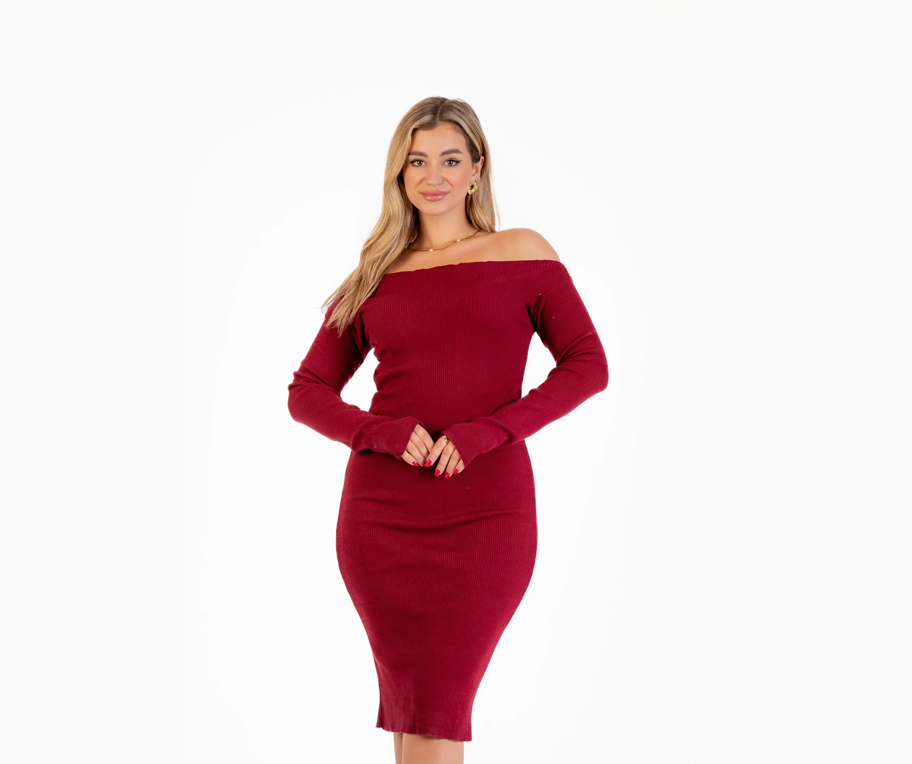 Winter off-shoulder knit dress