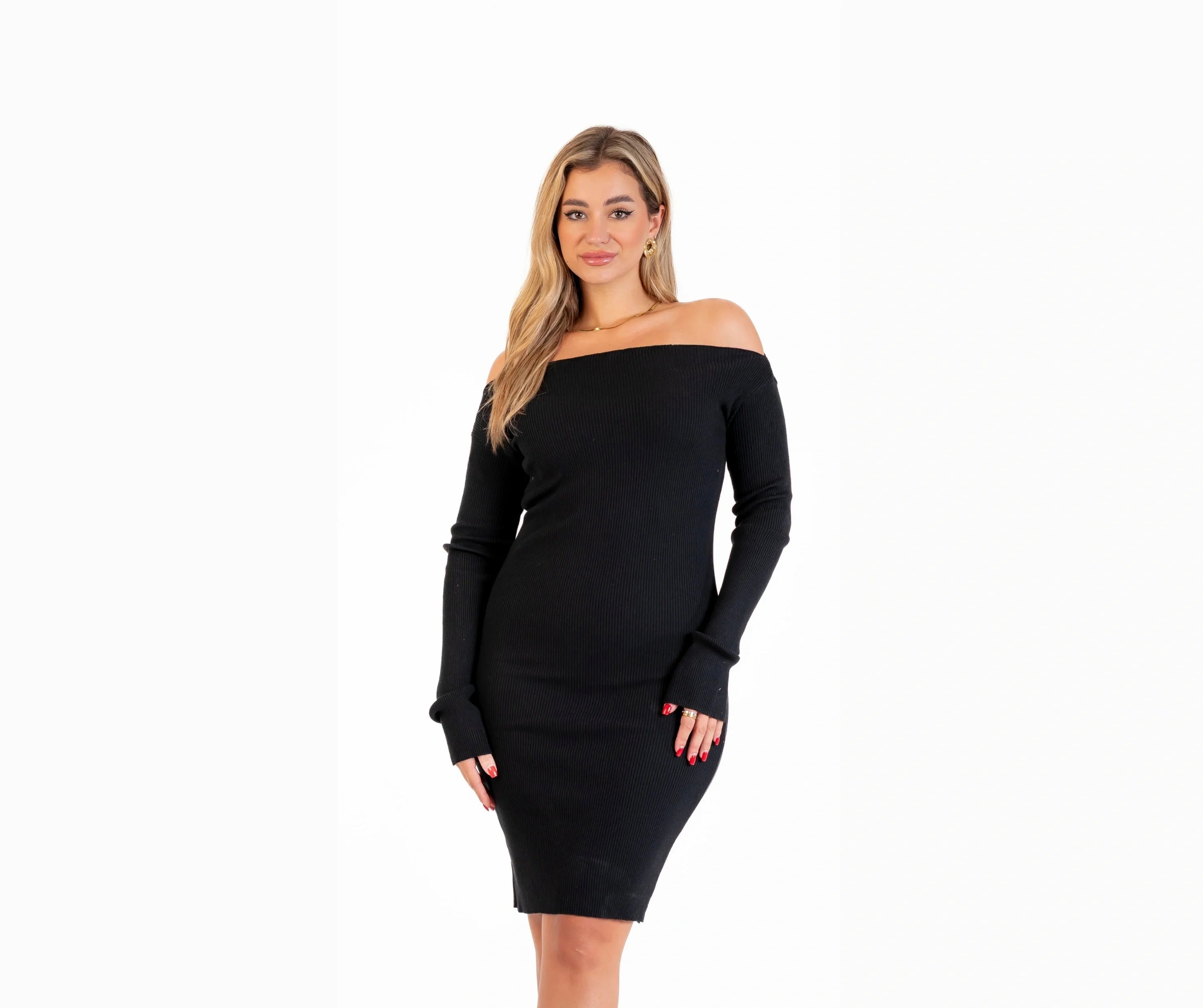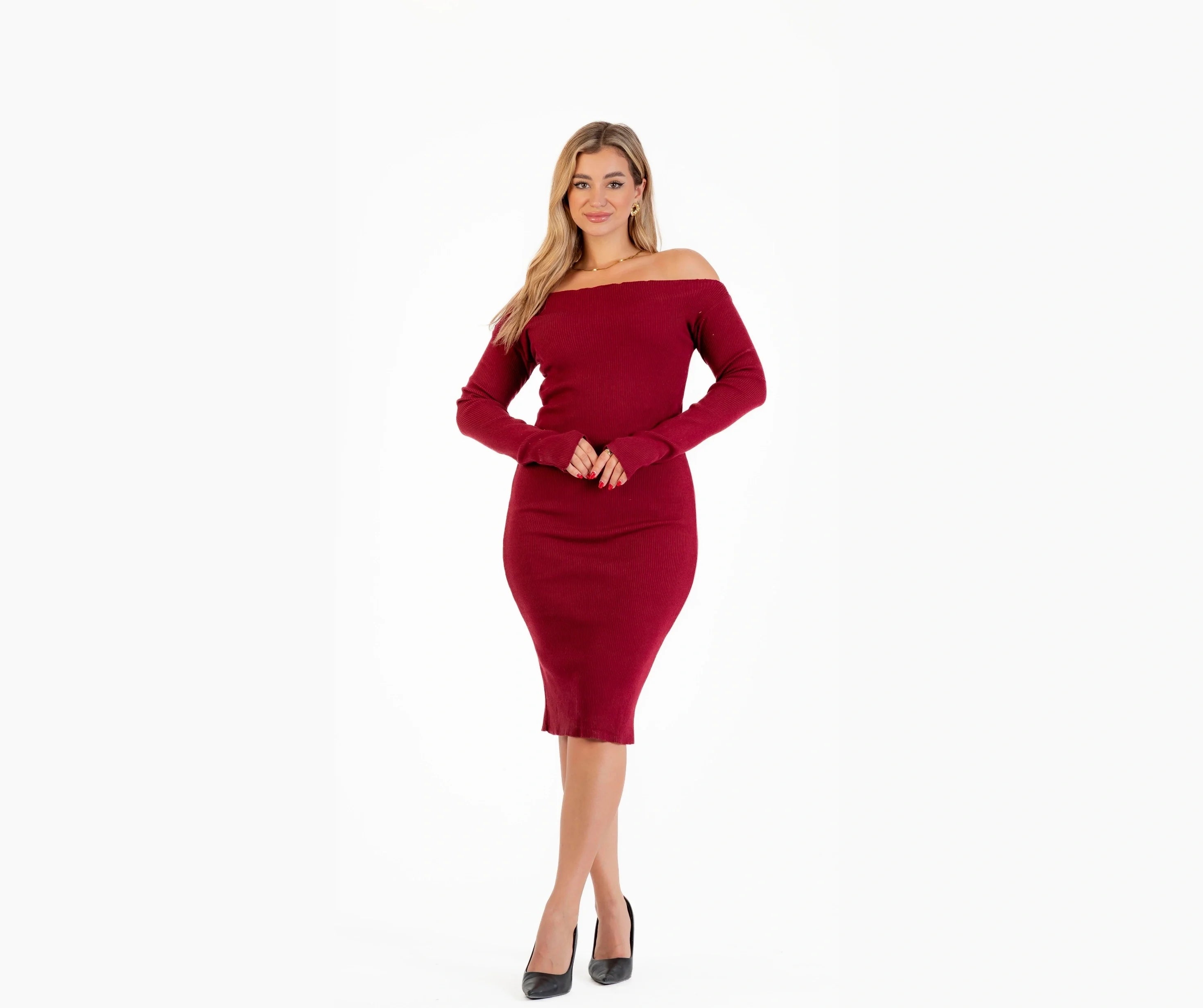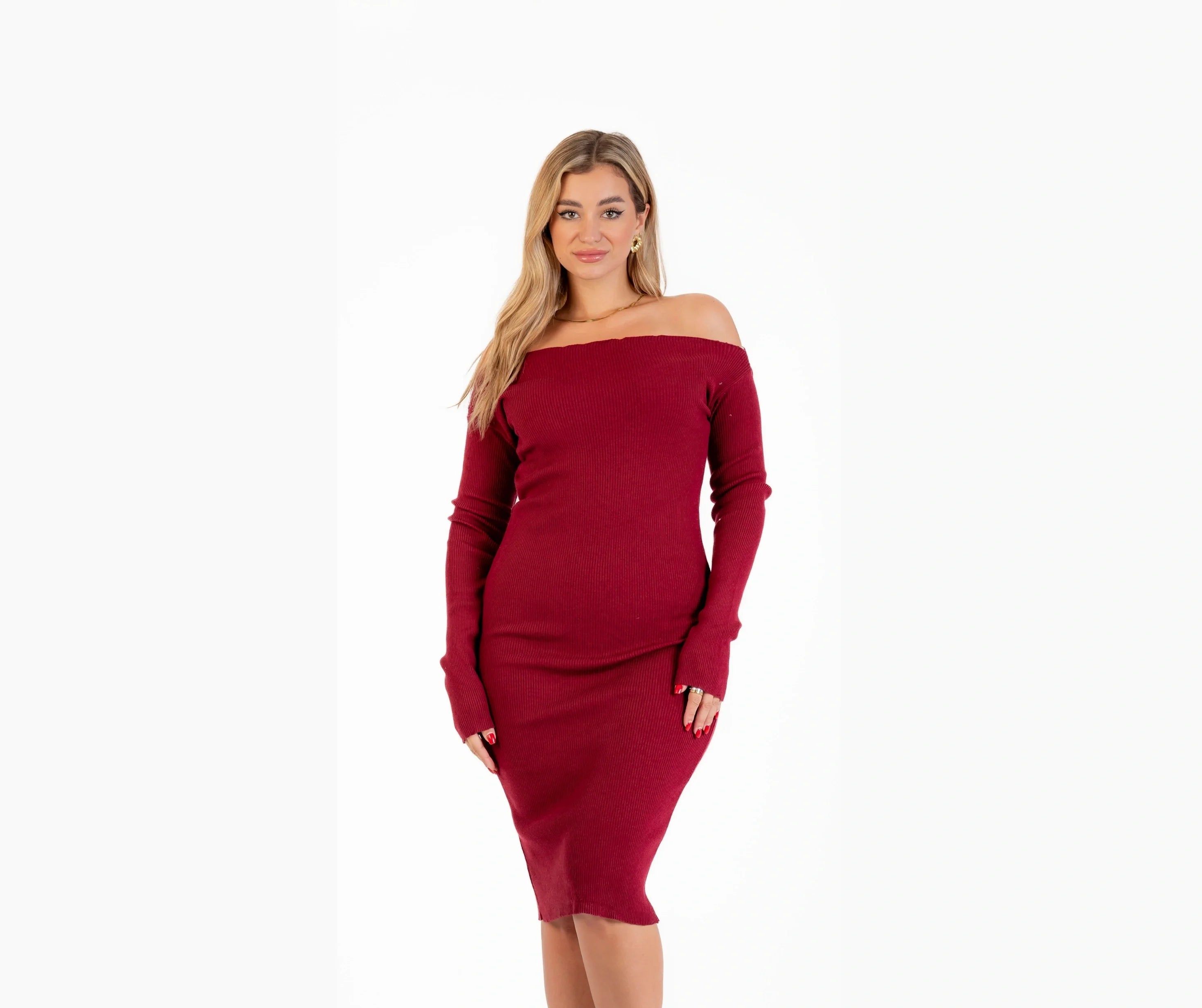 فستان تريكو شتوي كم اوف شولدر