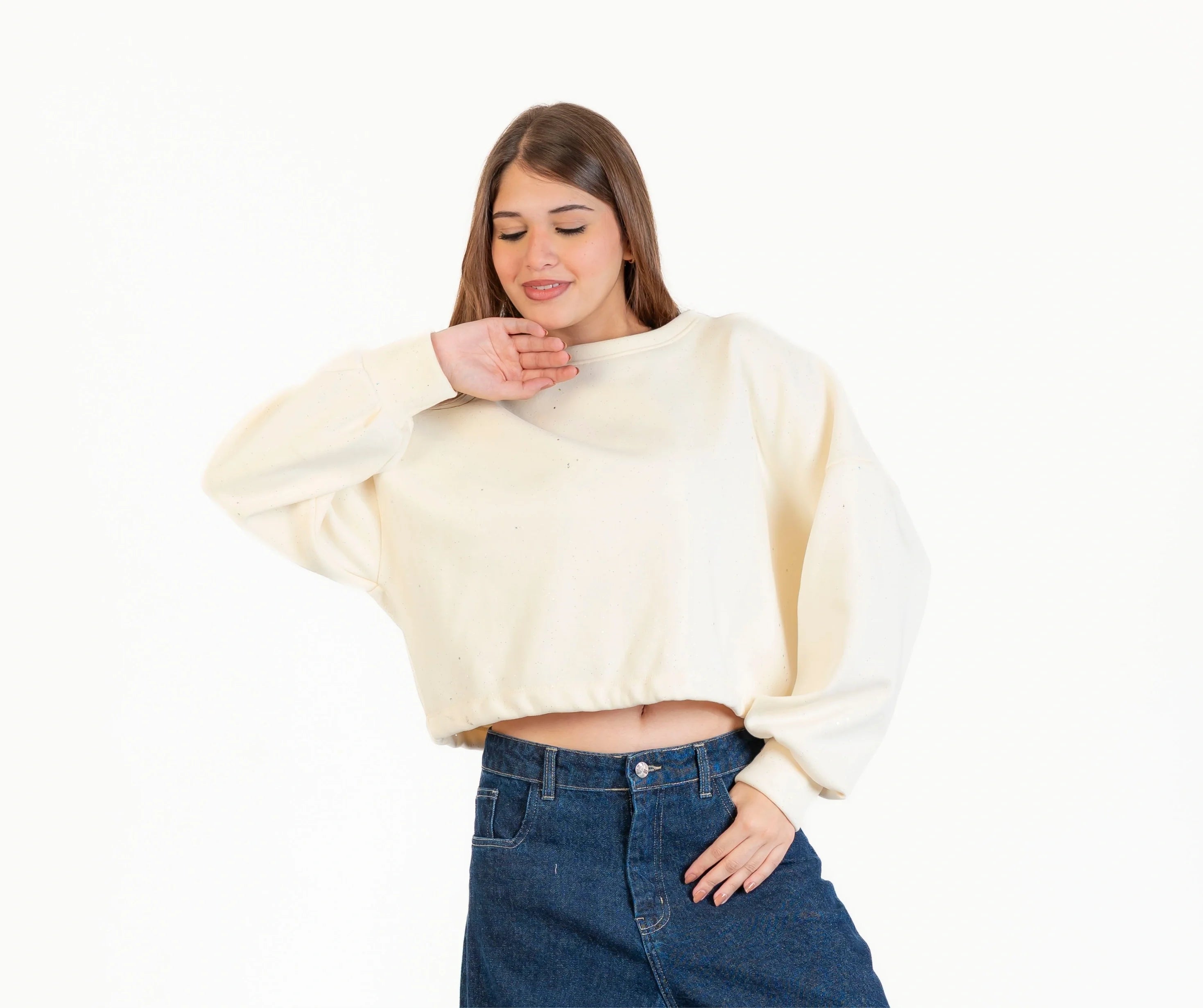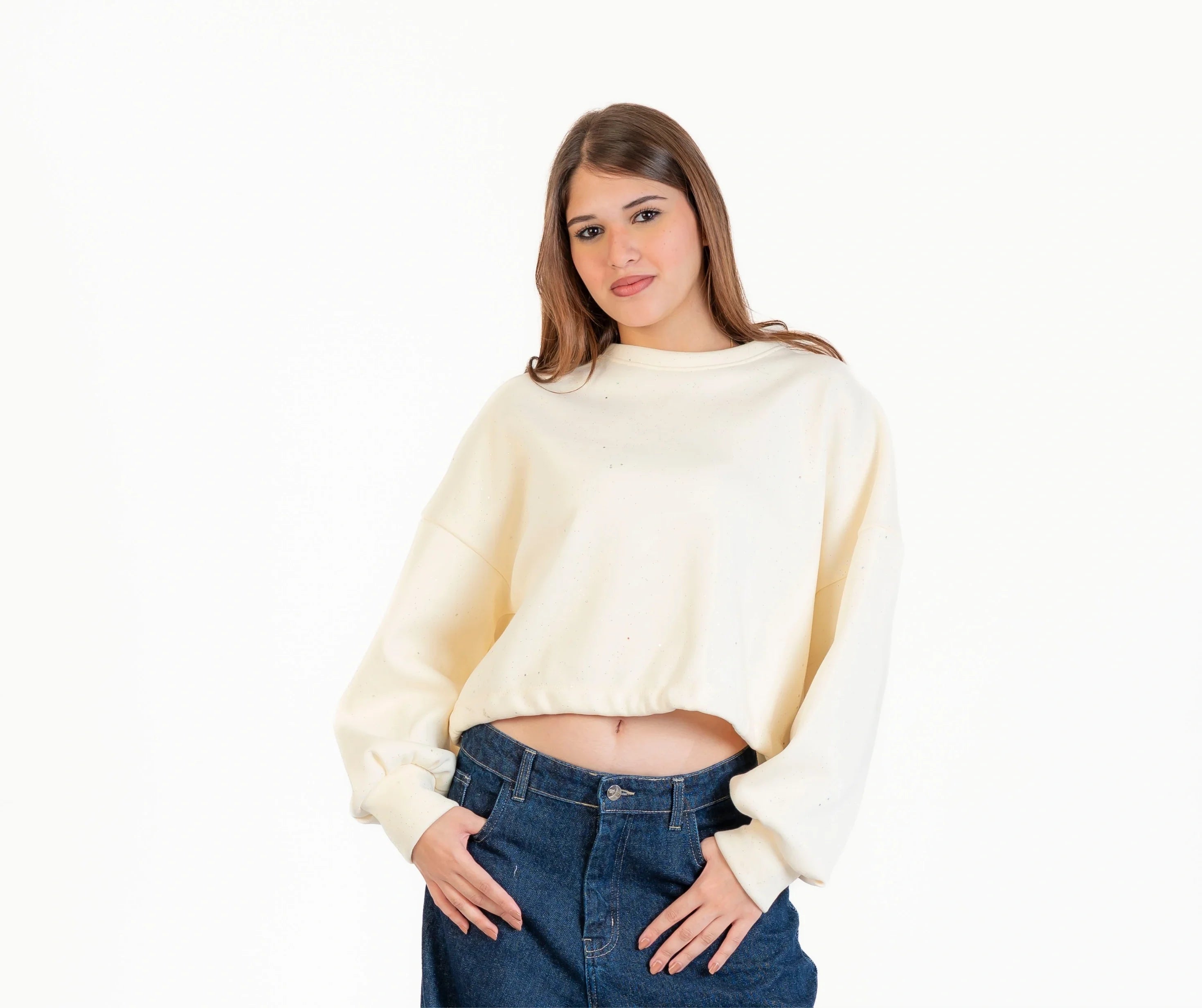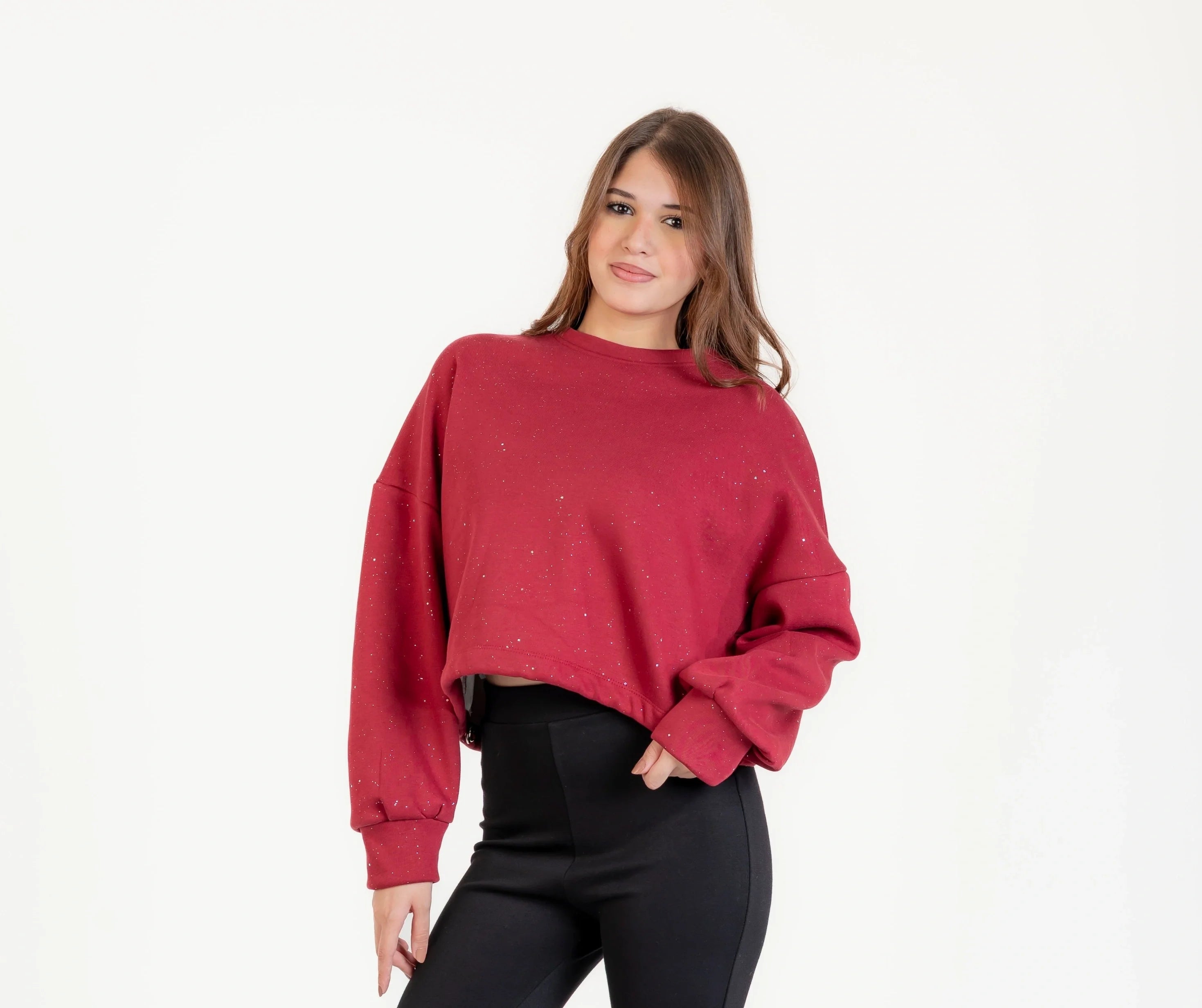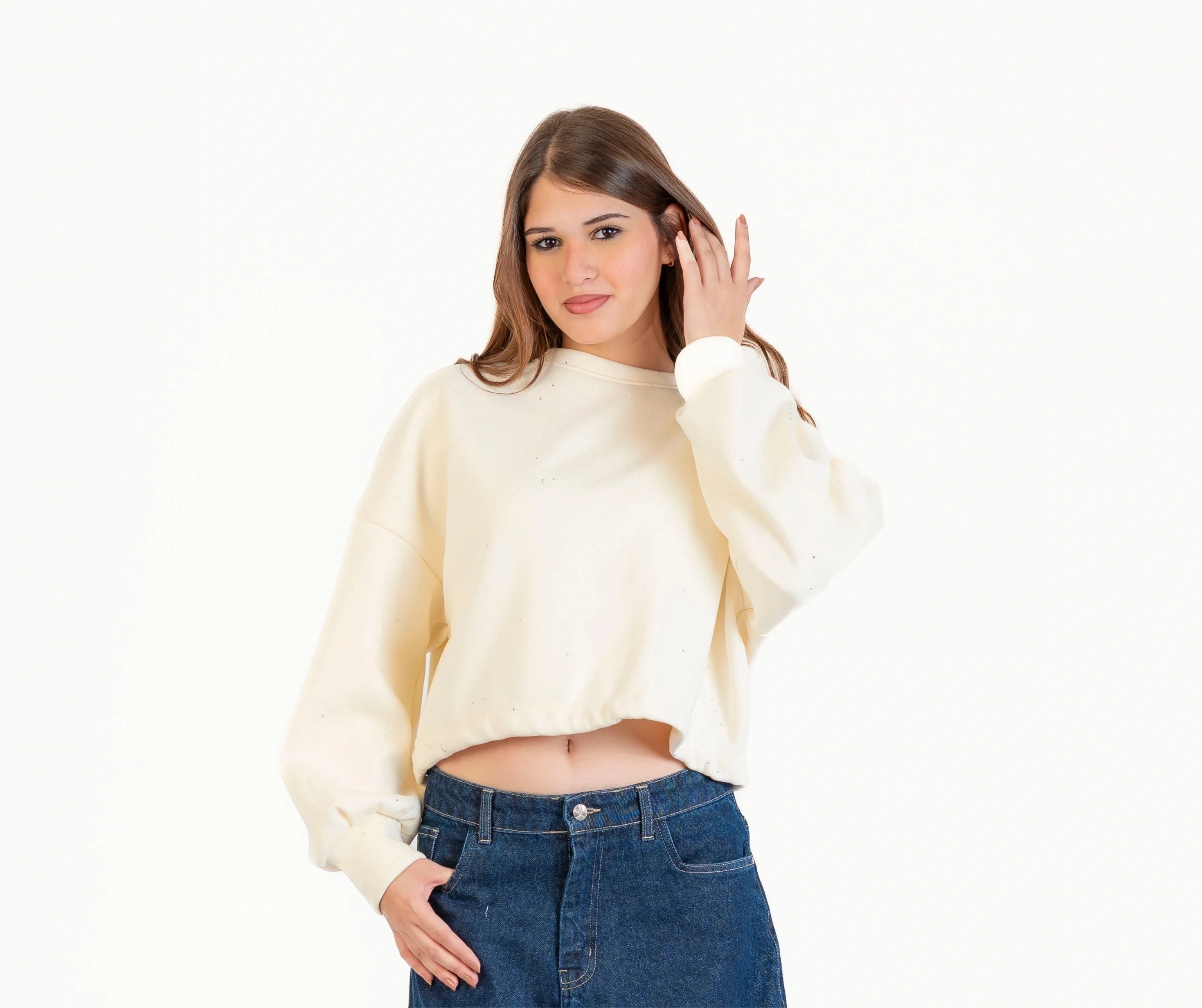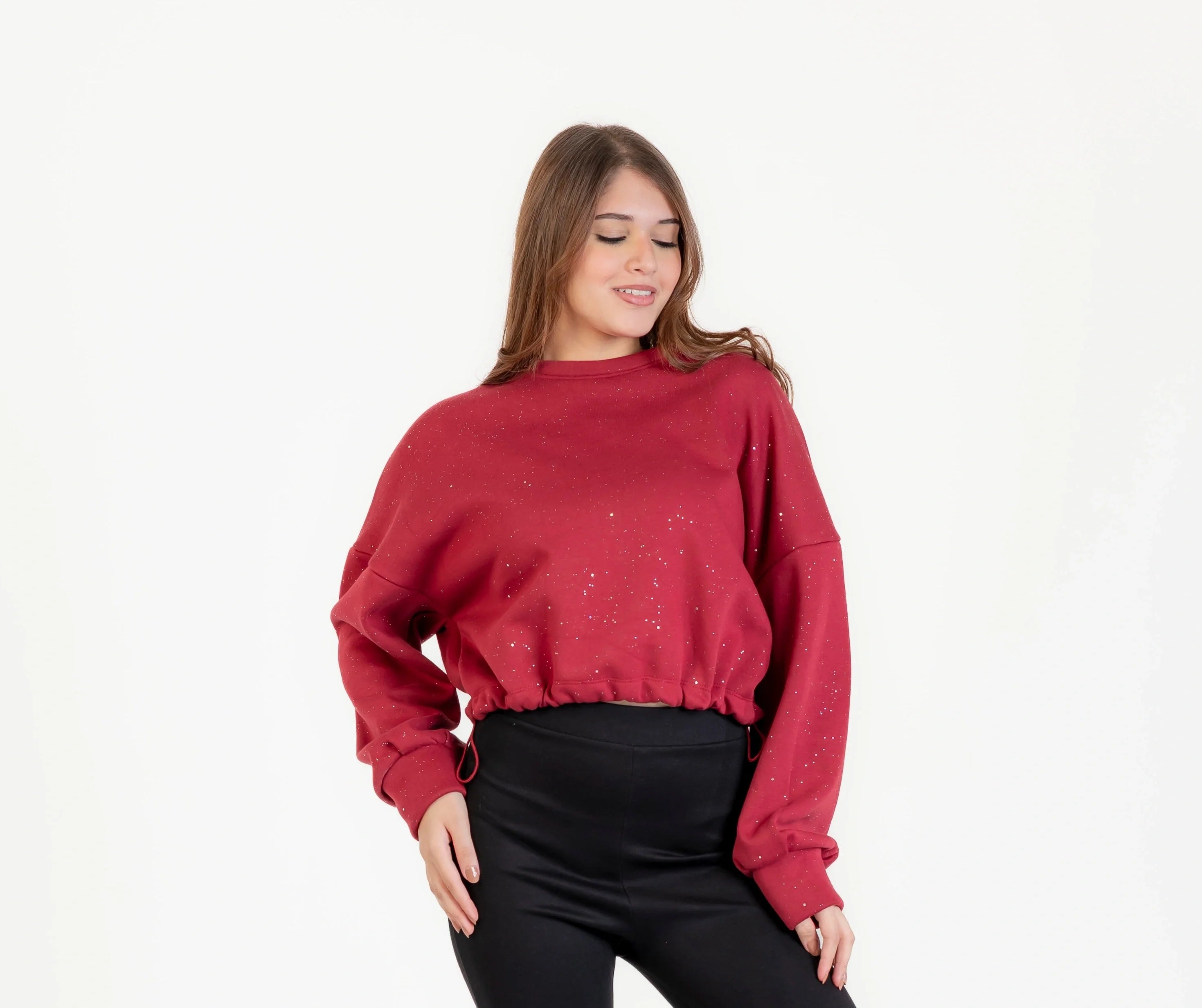Women's Melton sweatshirt, elastic waistband, suitable for winter