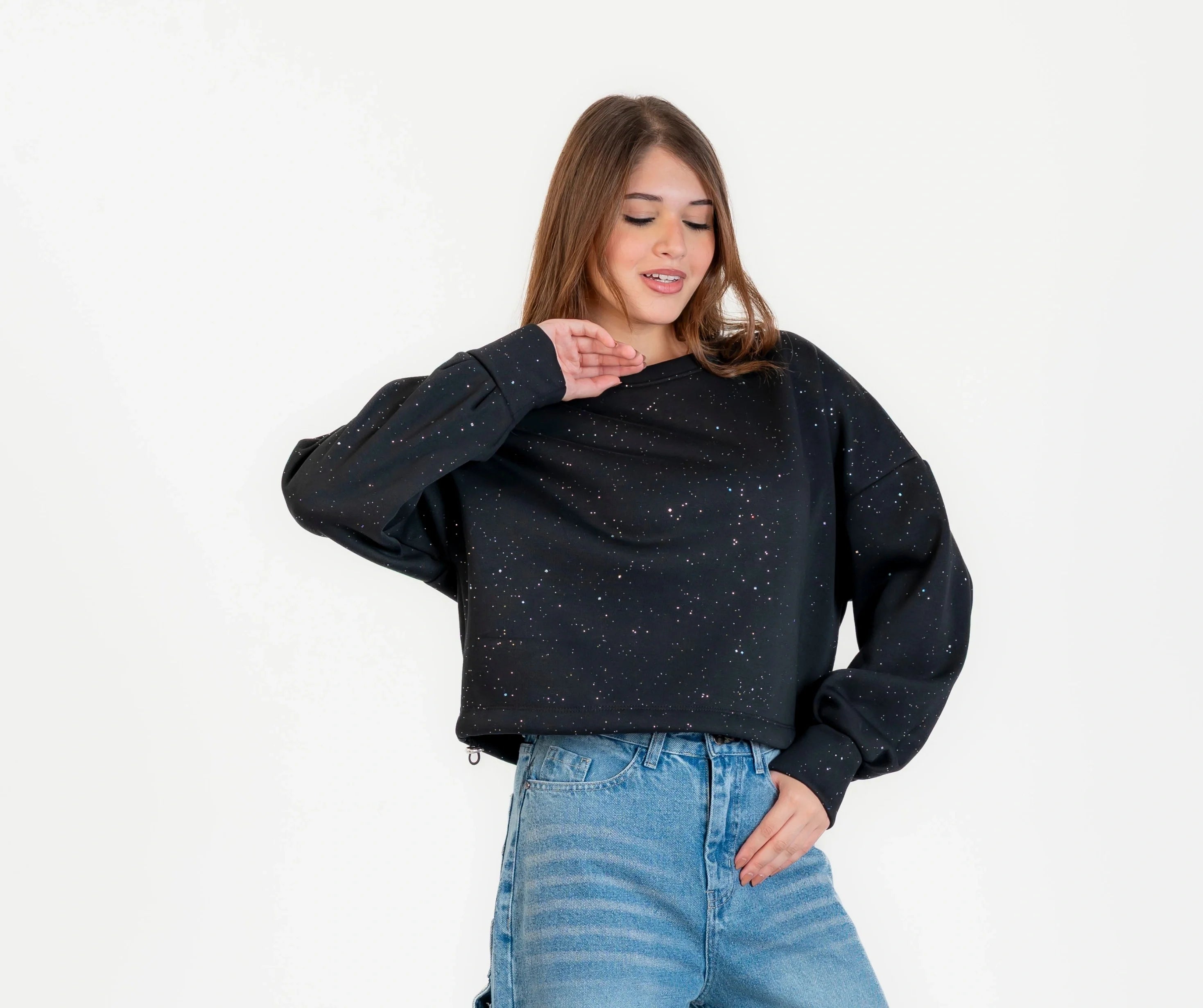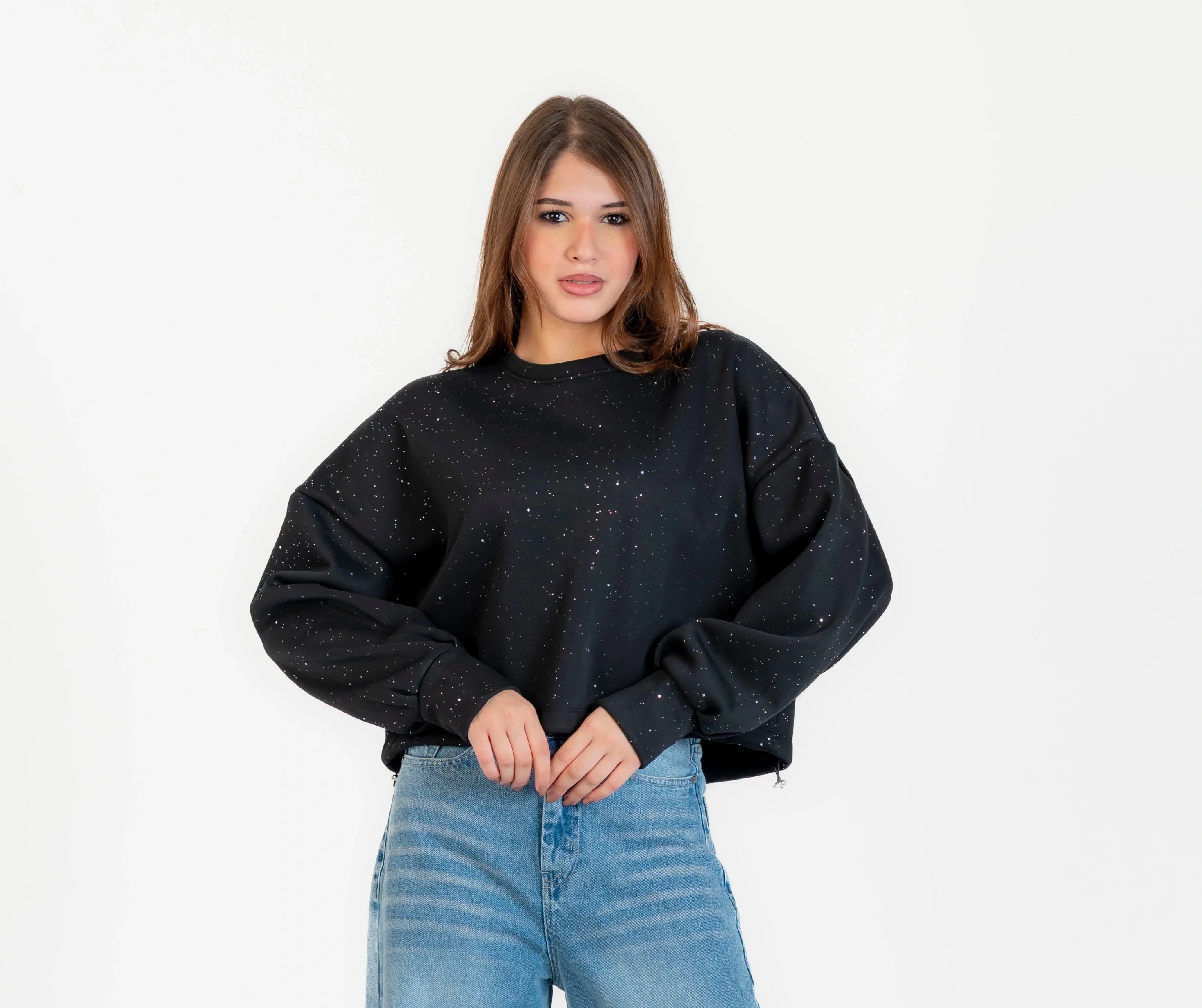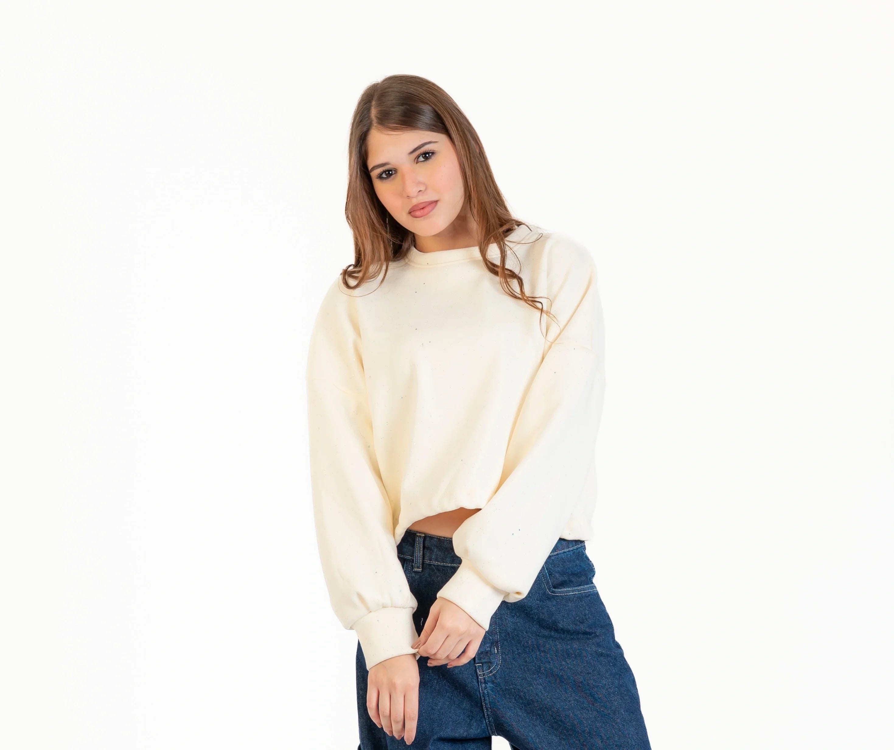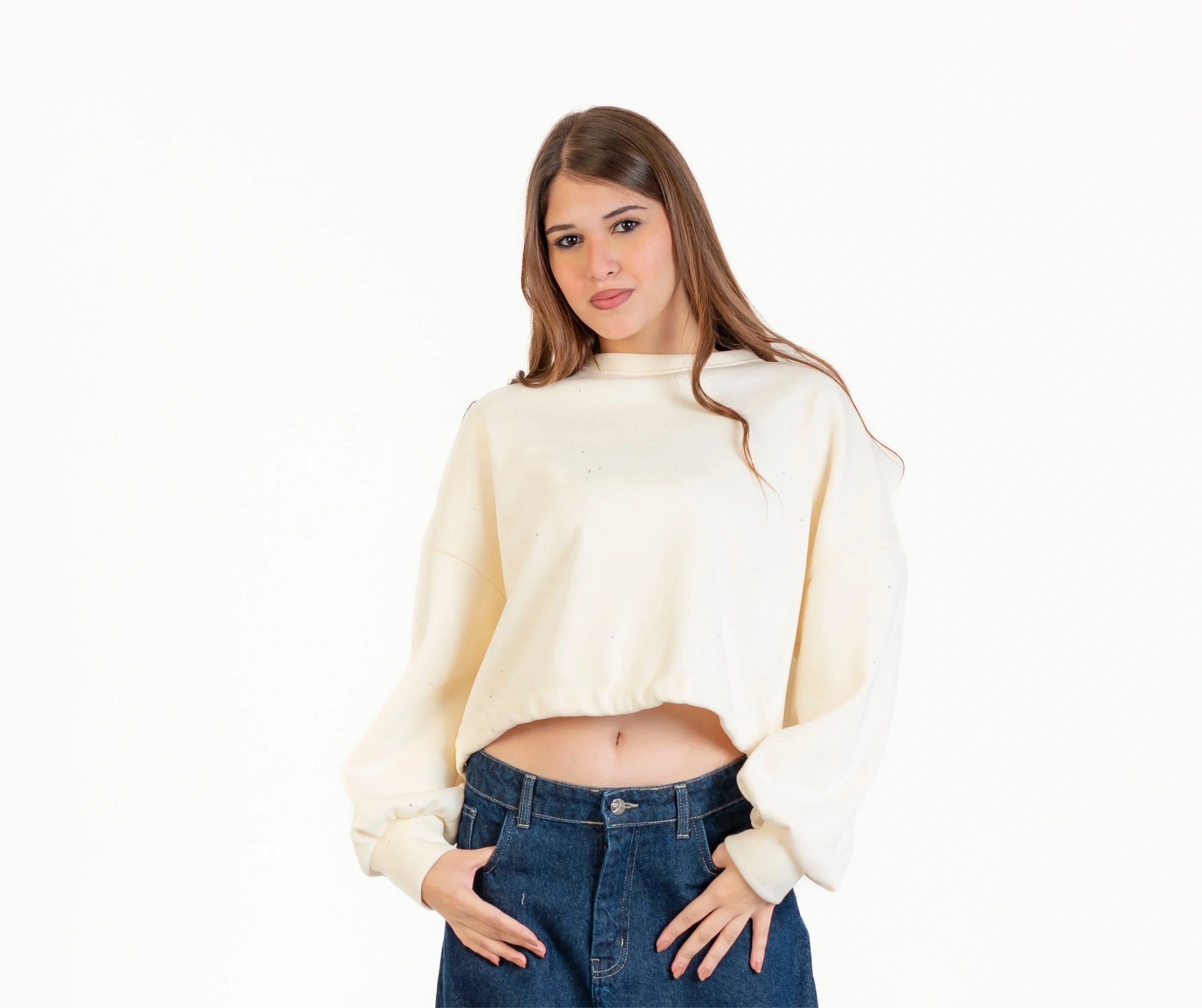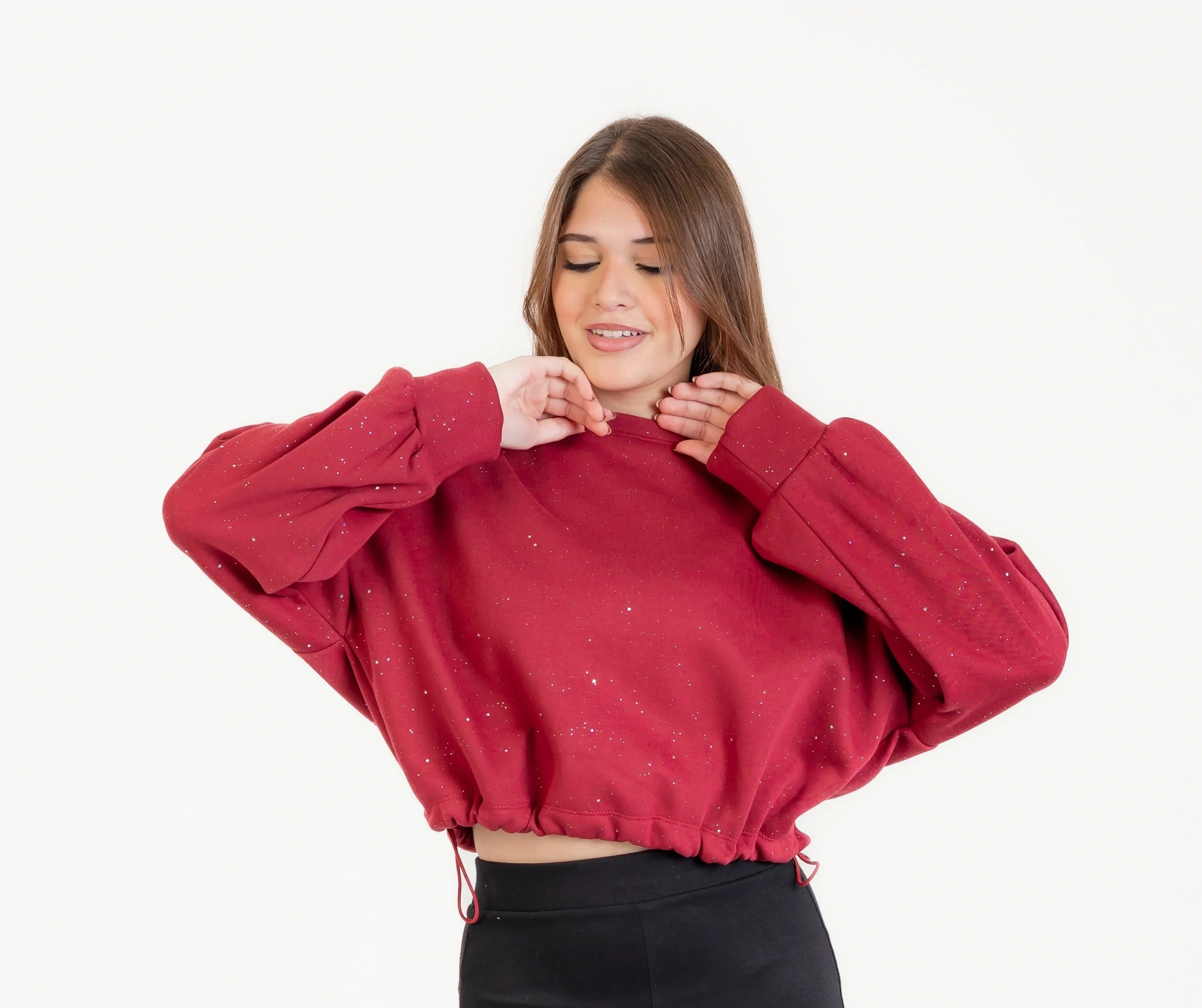 Women's Melton sweatshirt, elastic waistband, suitable for winter